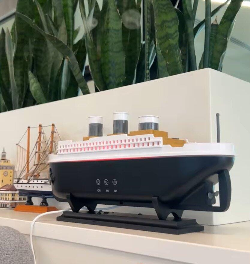 Titaniğin eşsiz ikonik gemisini masanıza taşıyan bu nemlendirici, ayarlanabilir farklı buhar ve renk modlarıyla odanıza okyanus havası katar.