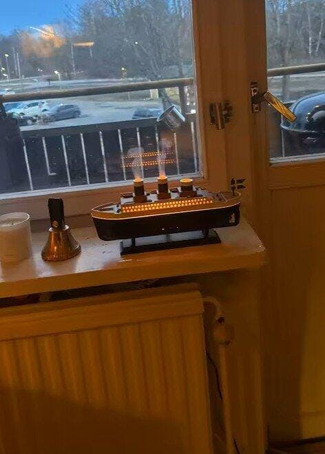 Bitane yelkenli vardı yanına da Titanik nemlendiriciyi koydum bence koyduğum yere tam oturdu az önce denedim güzel gözüküyor özellikle denizanası modu daha iyi ayrıca odadaki neminde arttığını hissettim kuru hava gitti